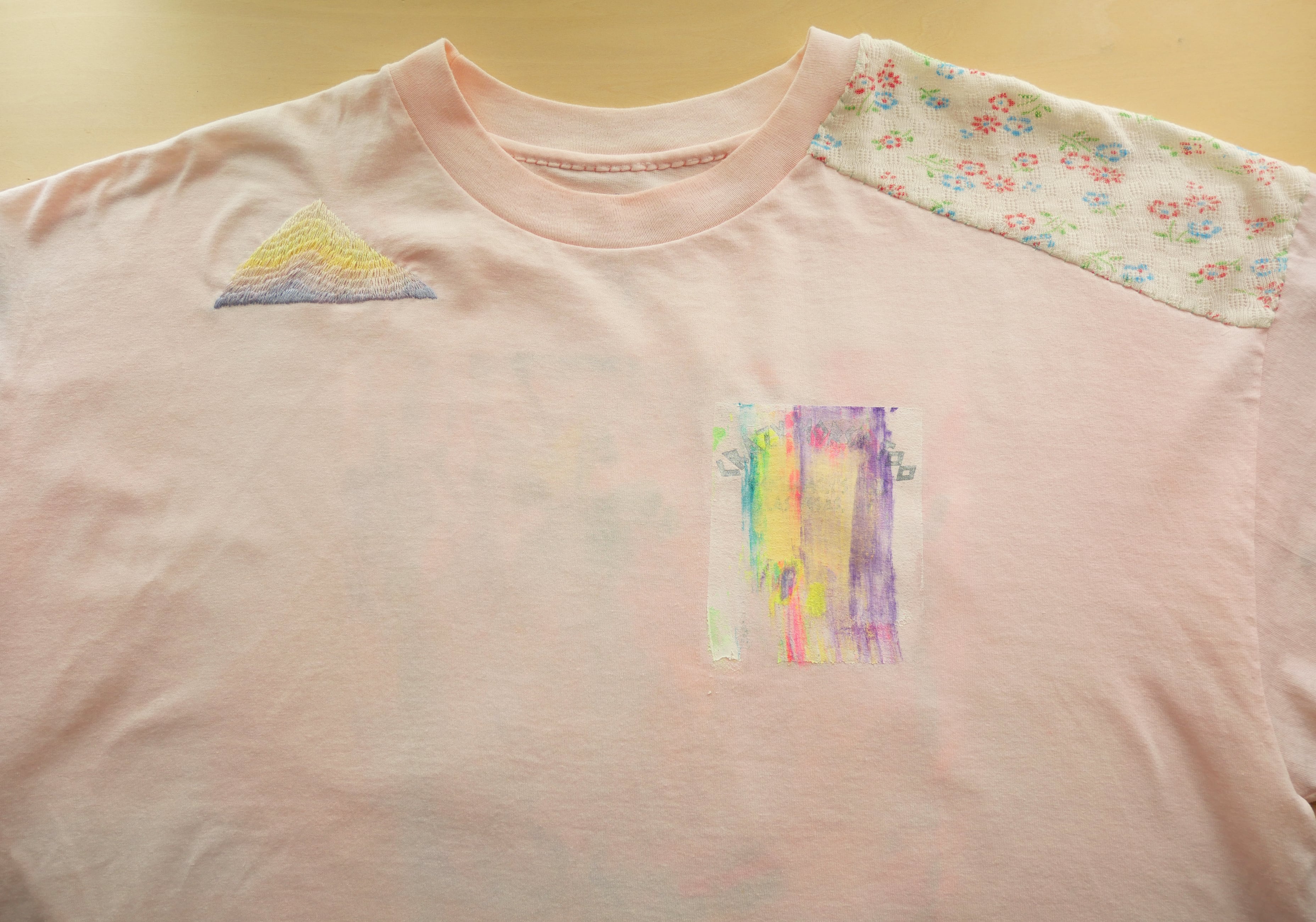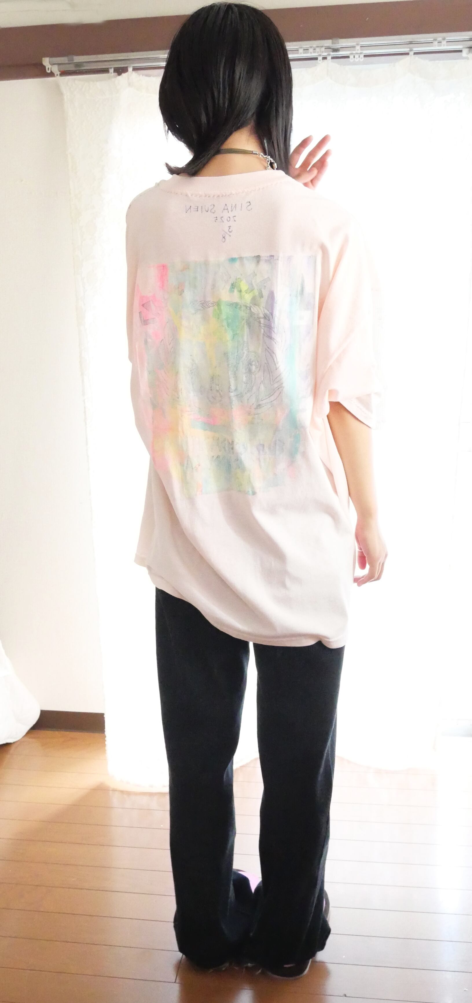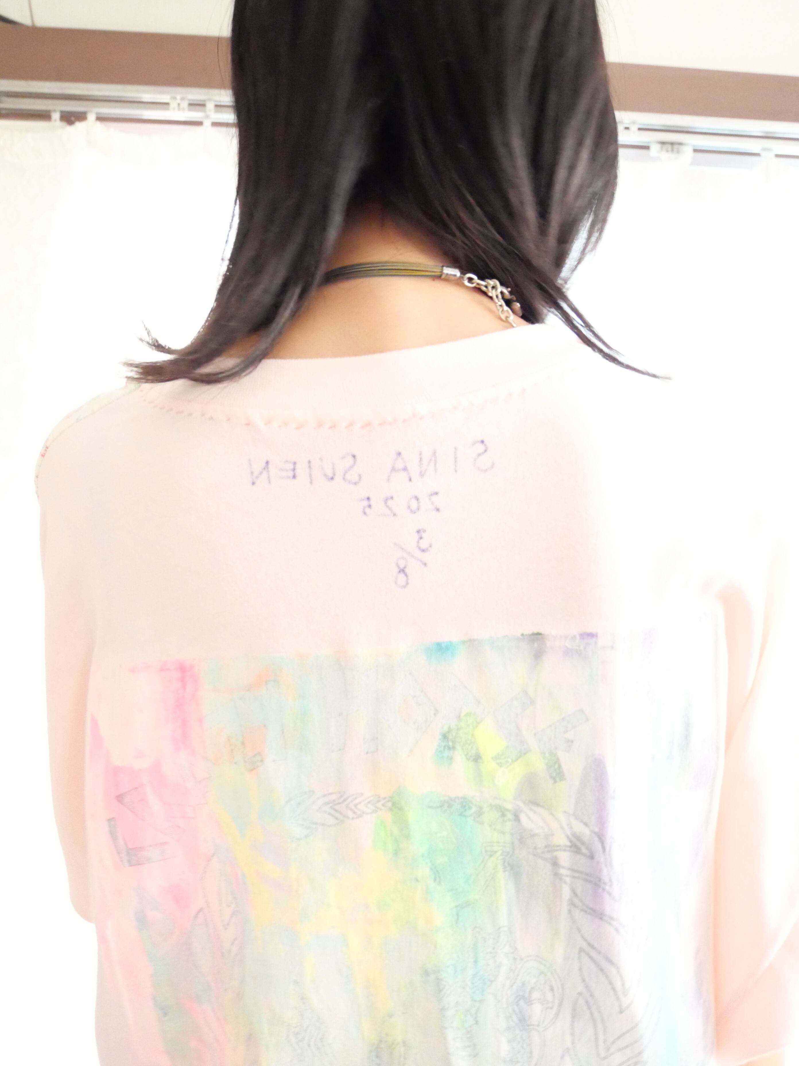 左胸と背中にシルクスクリーン用インクでハンドペイント。