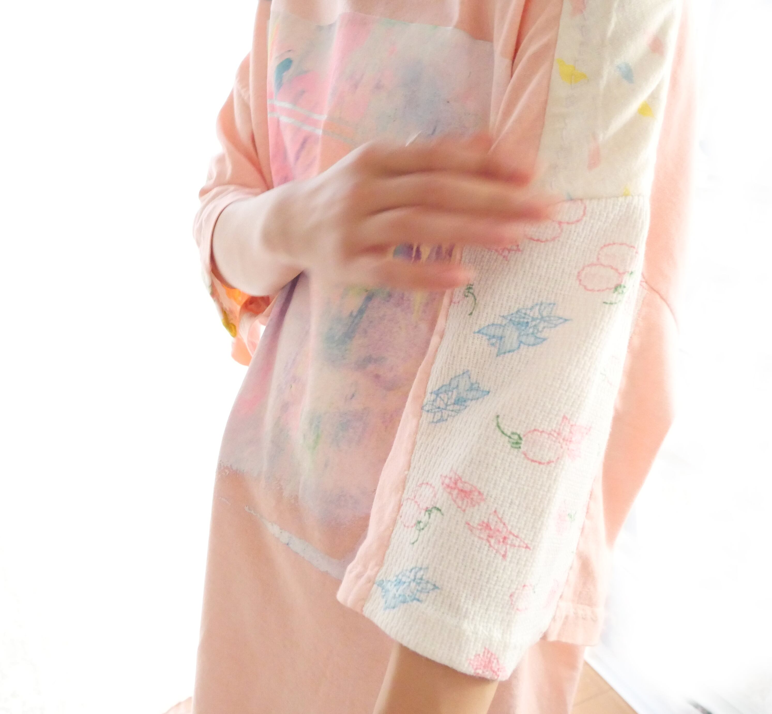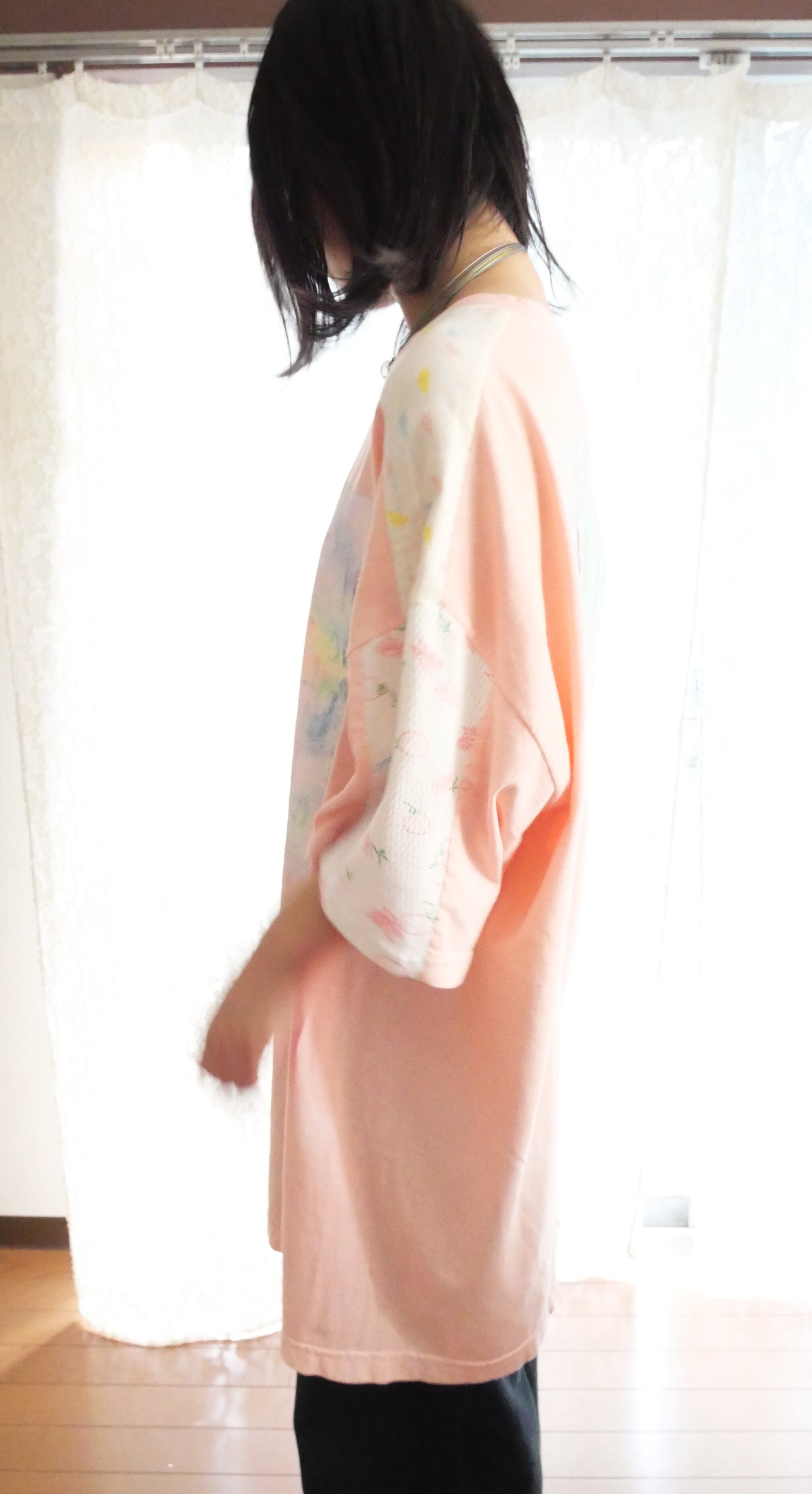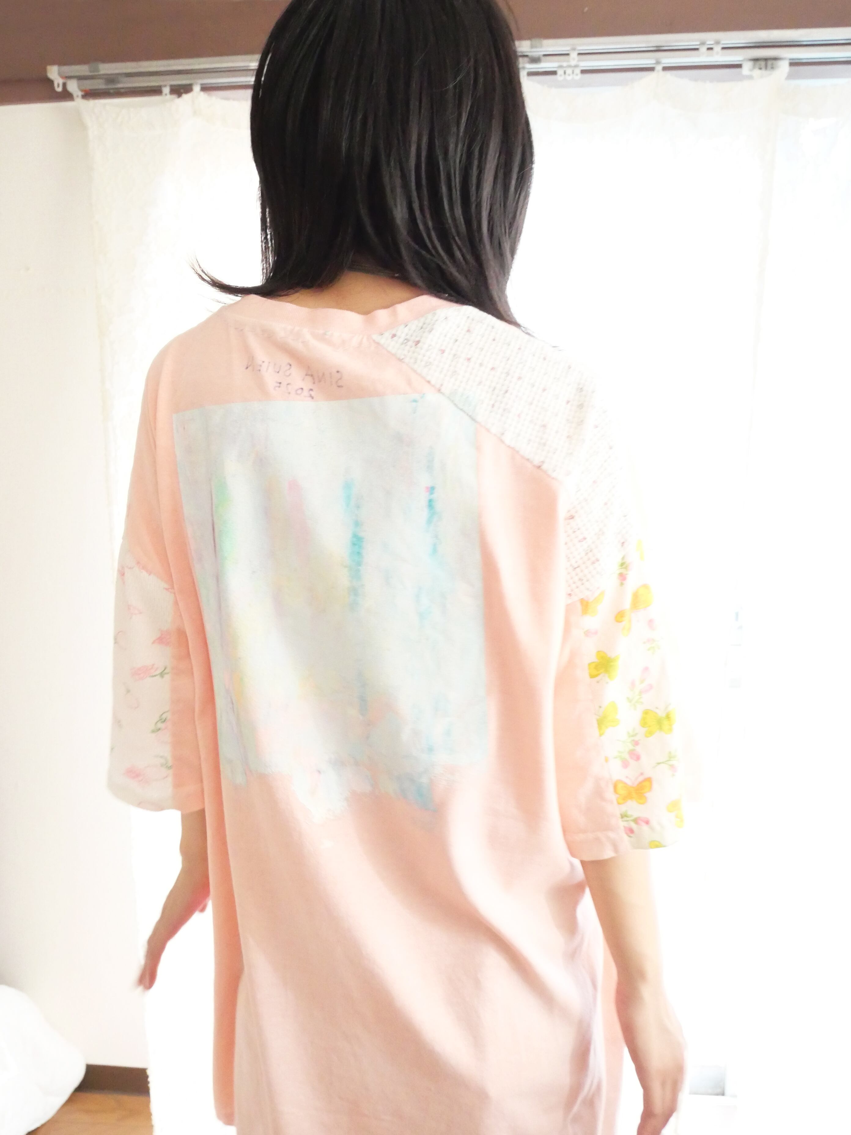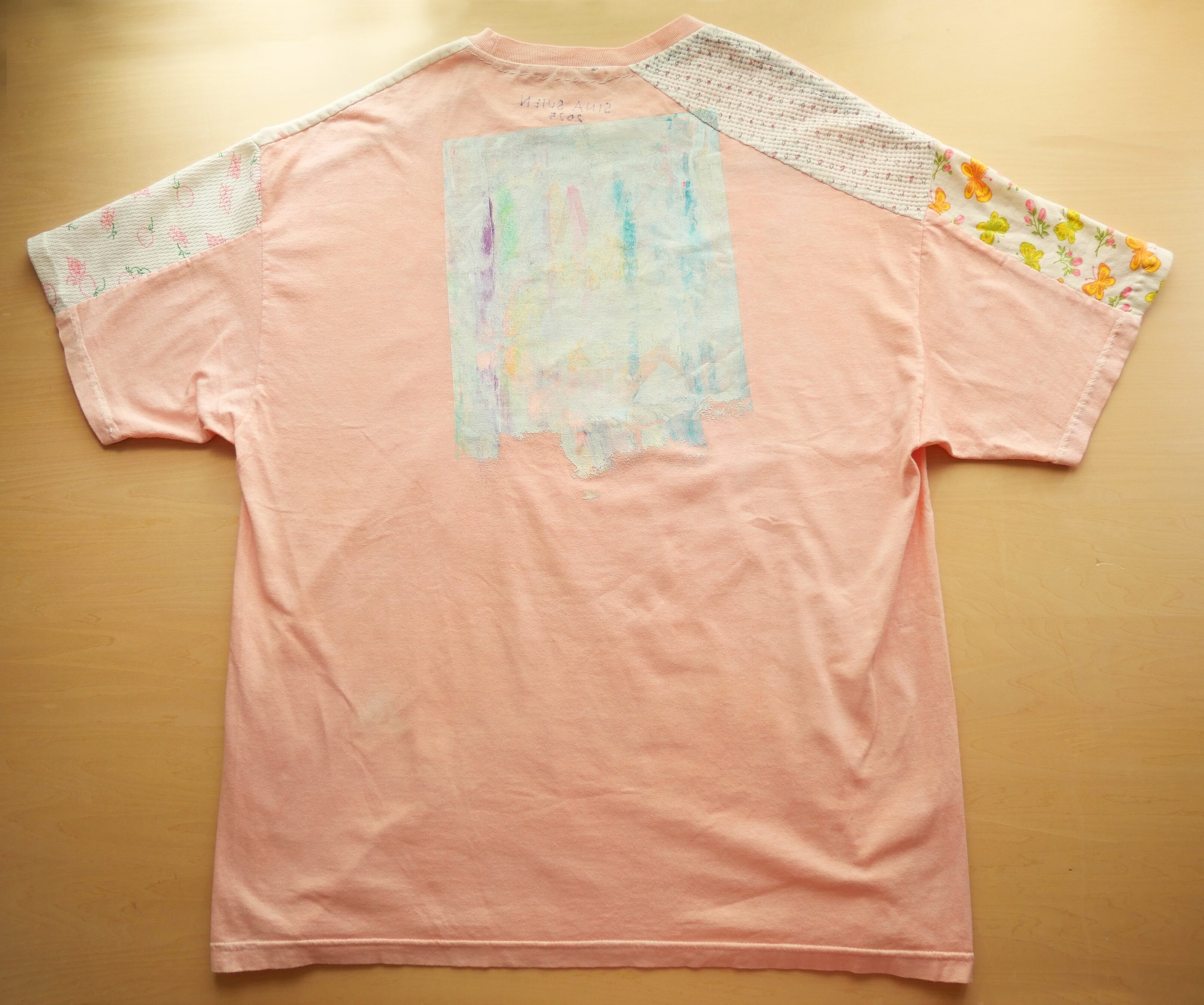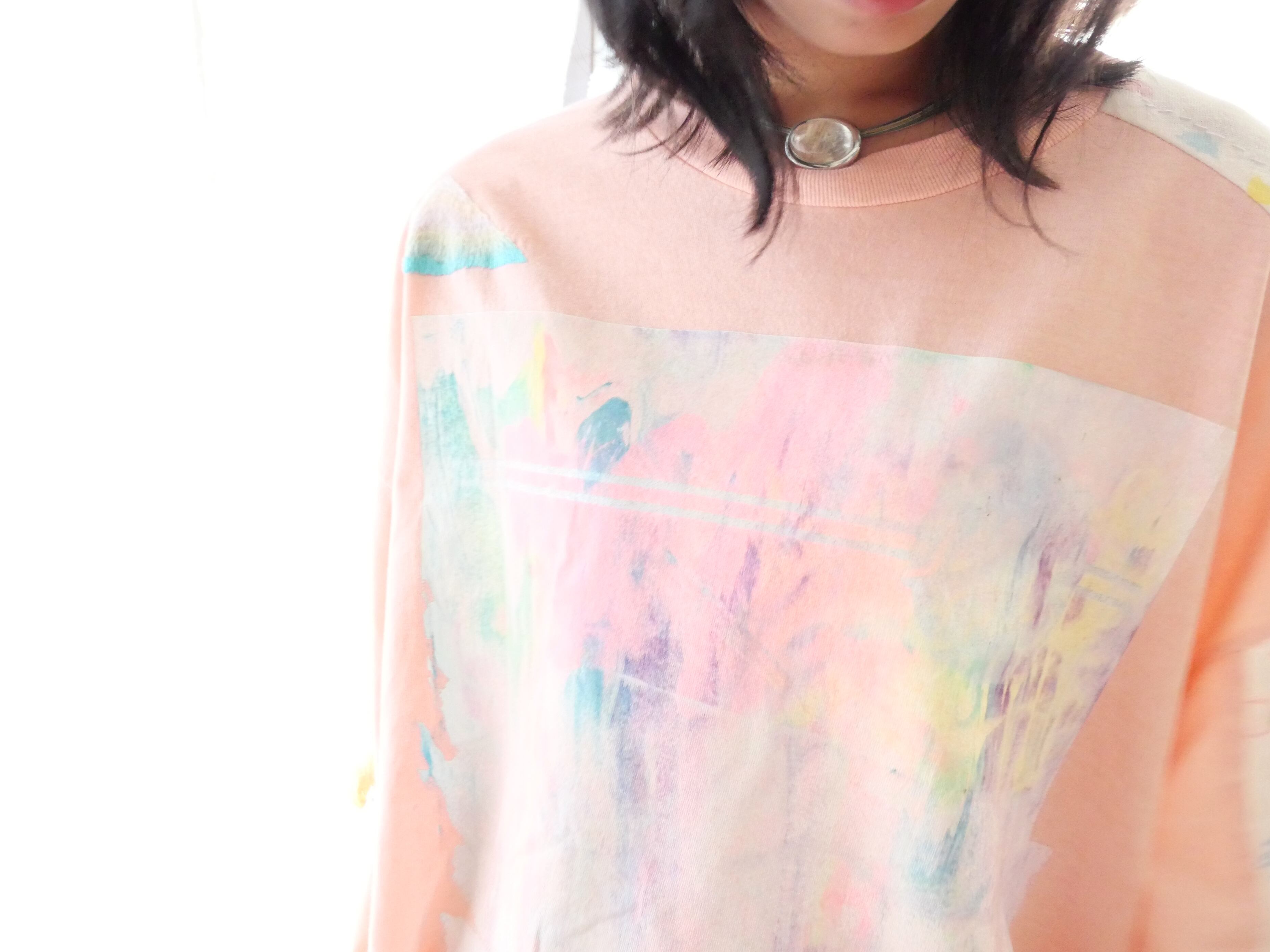 胸元と背中にシルクスクリーン用インクでハンドペイント。