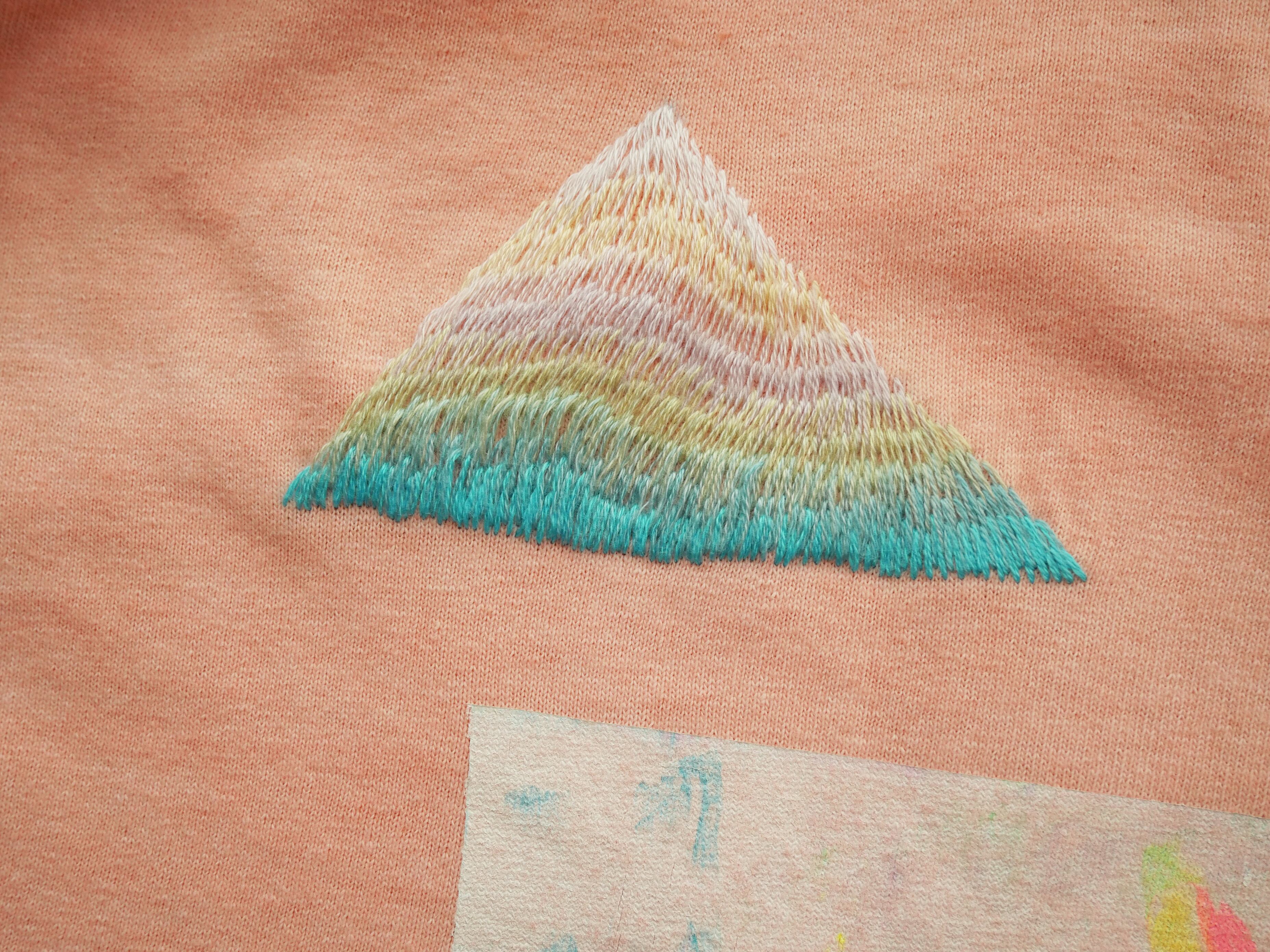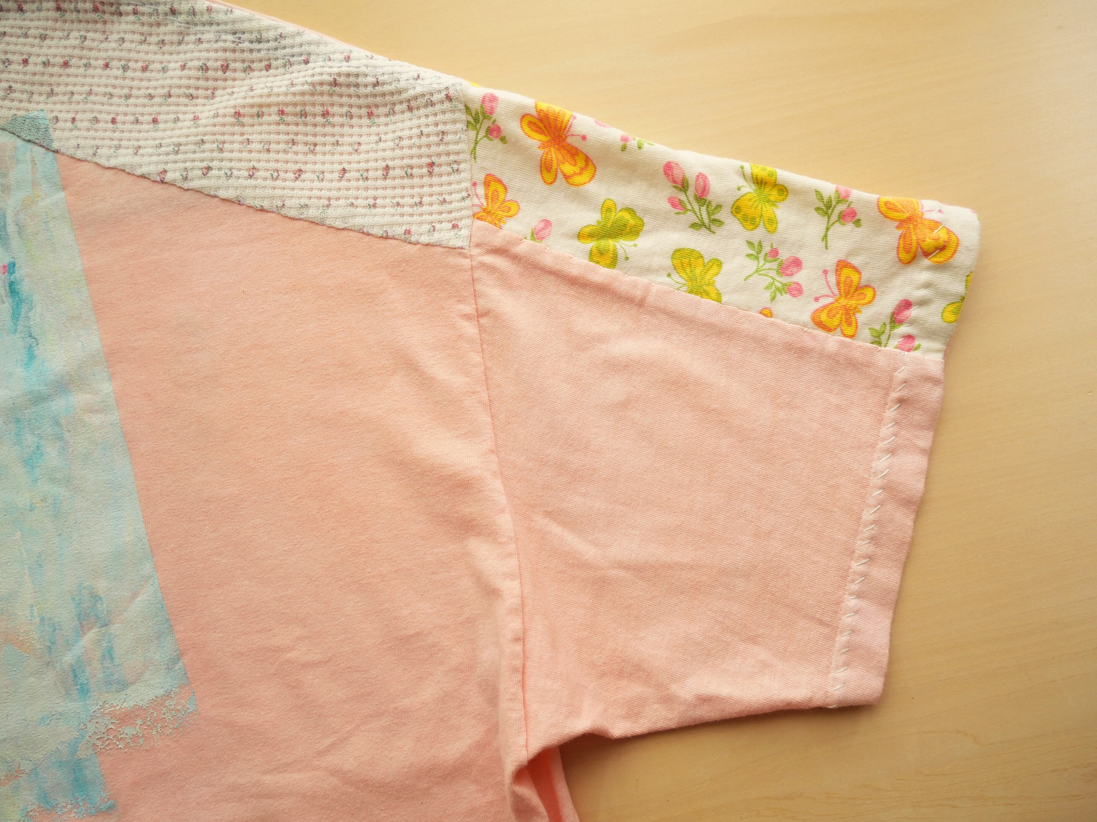 首元やパッチワーク部分に刺繍糸でハンドステッチ。