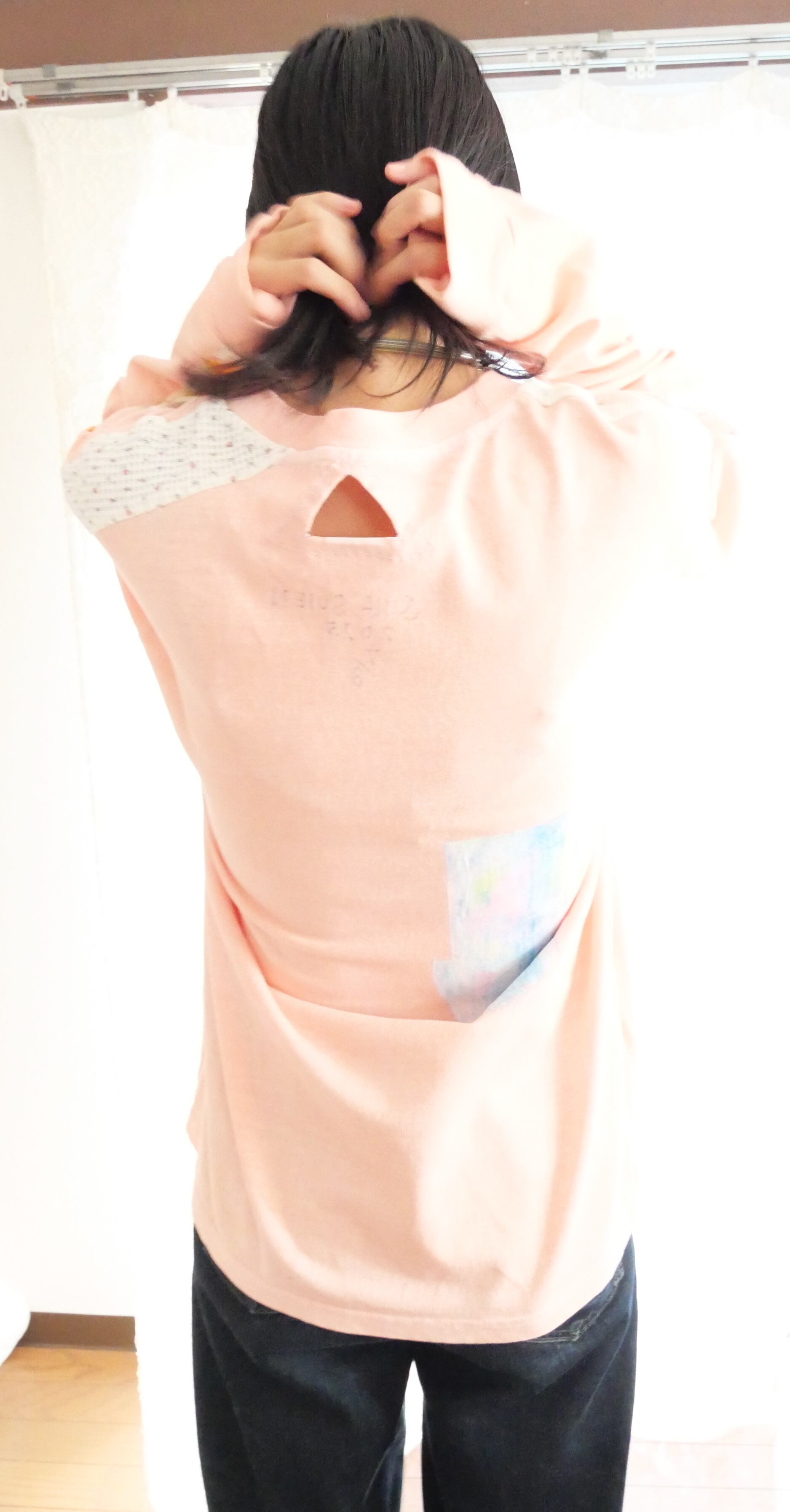 胸元と背中にシルクスクリーン用インクでハンドペイント。