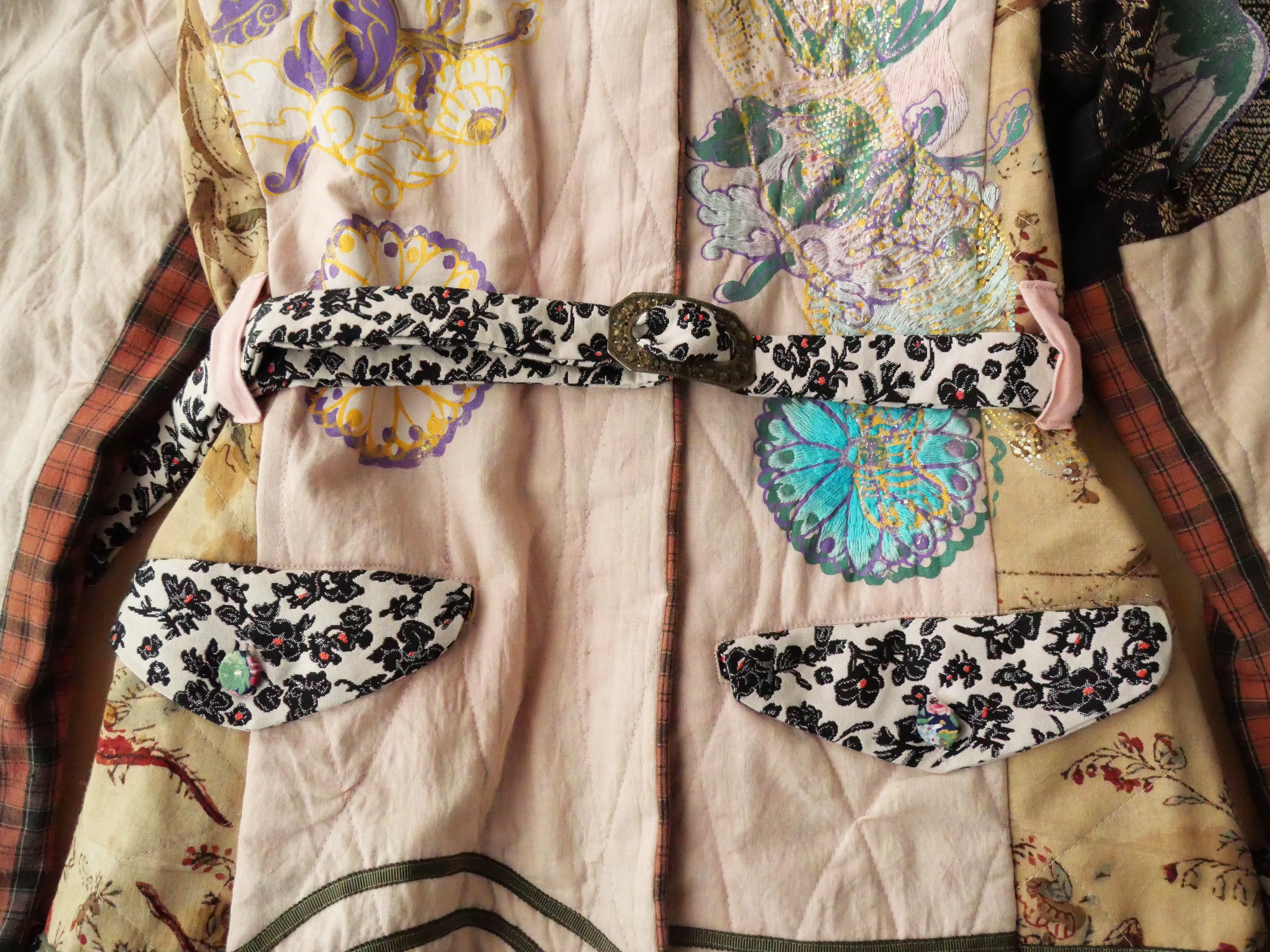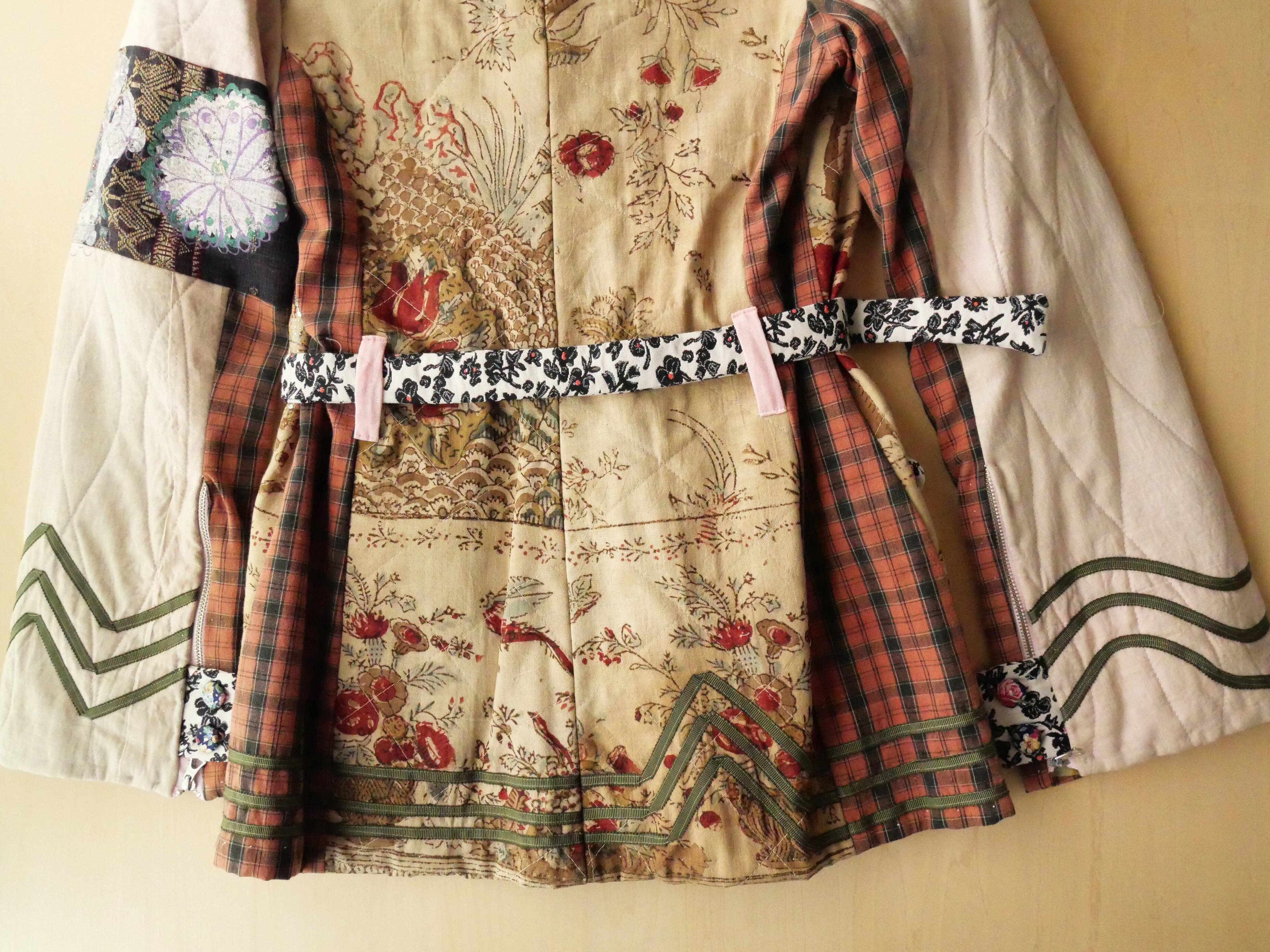ヴィンテージコットンやスマトラ島民族衣装などの生地のパッチワーク。