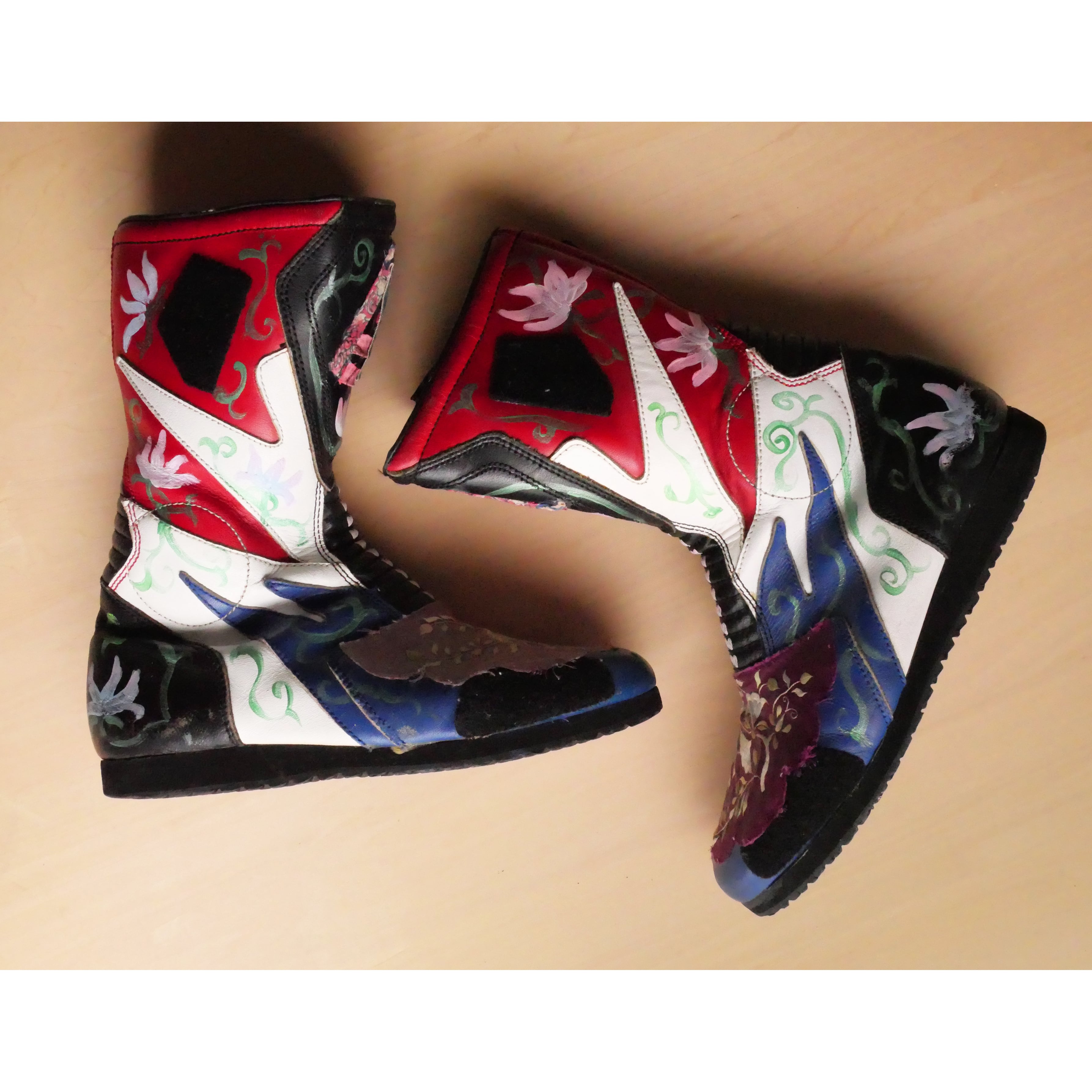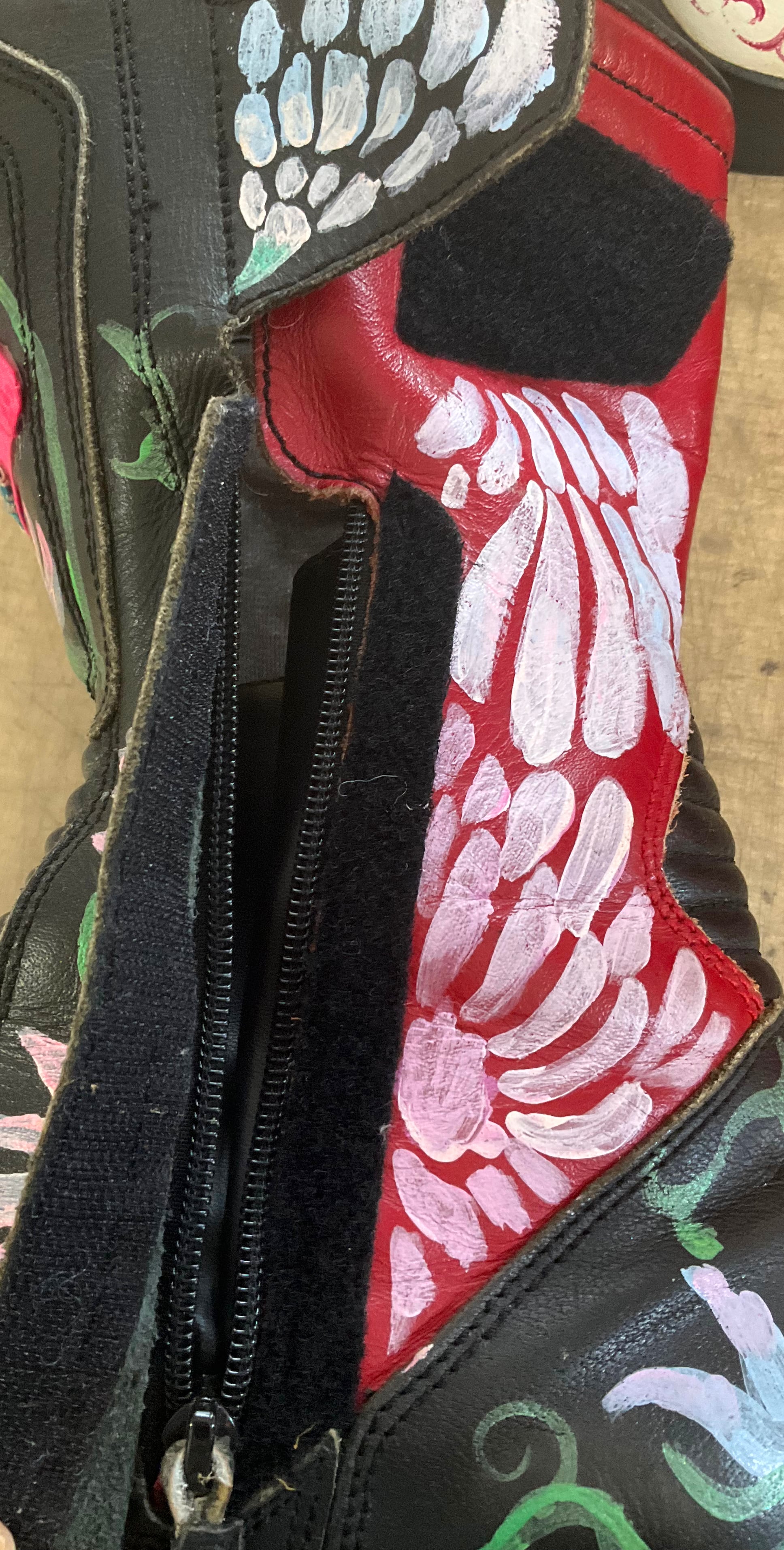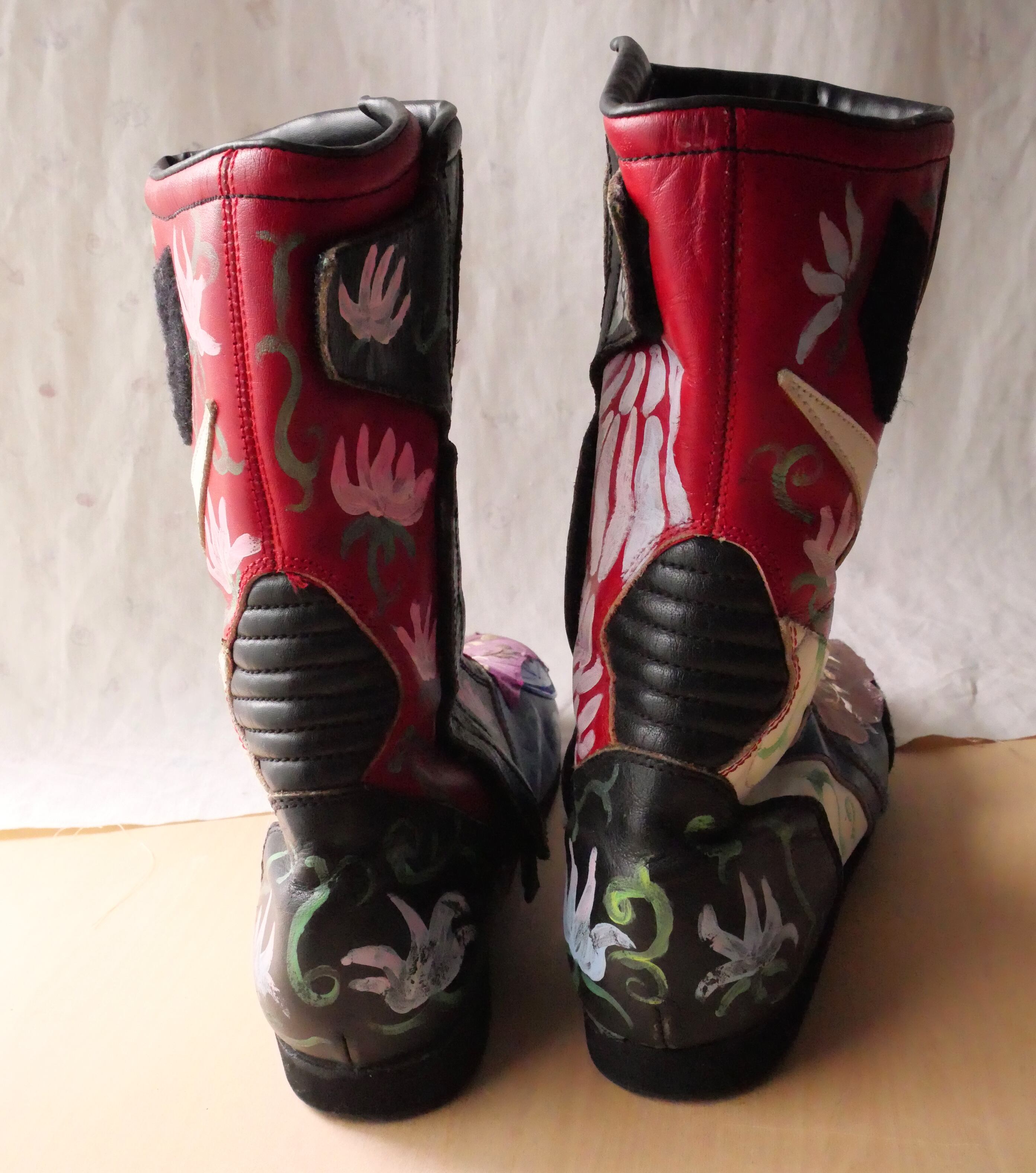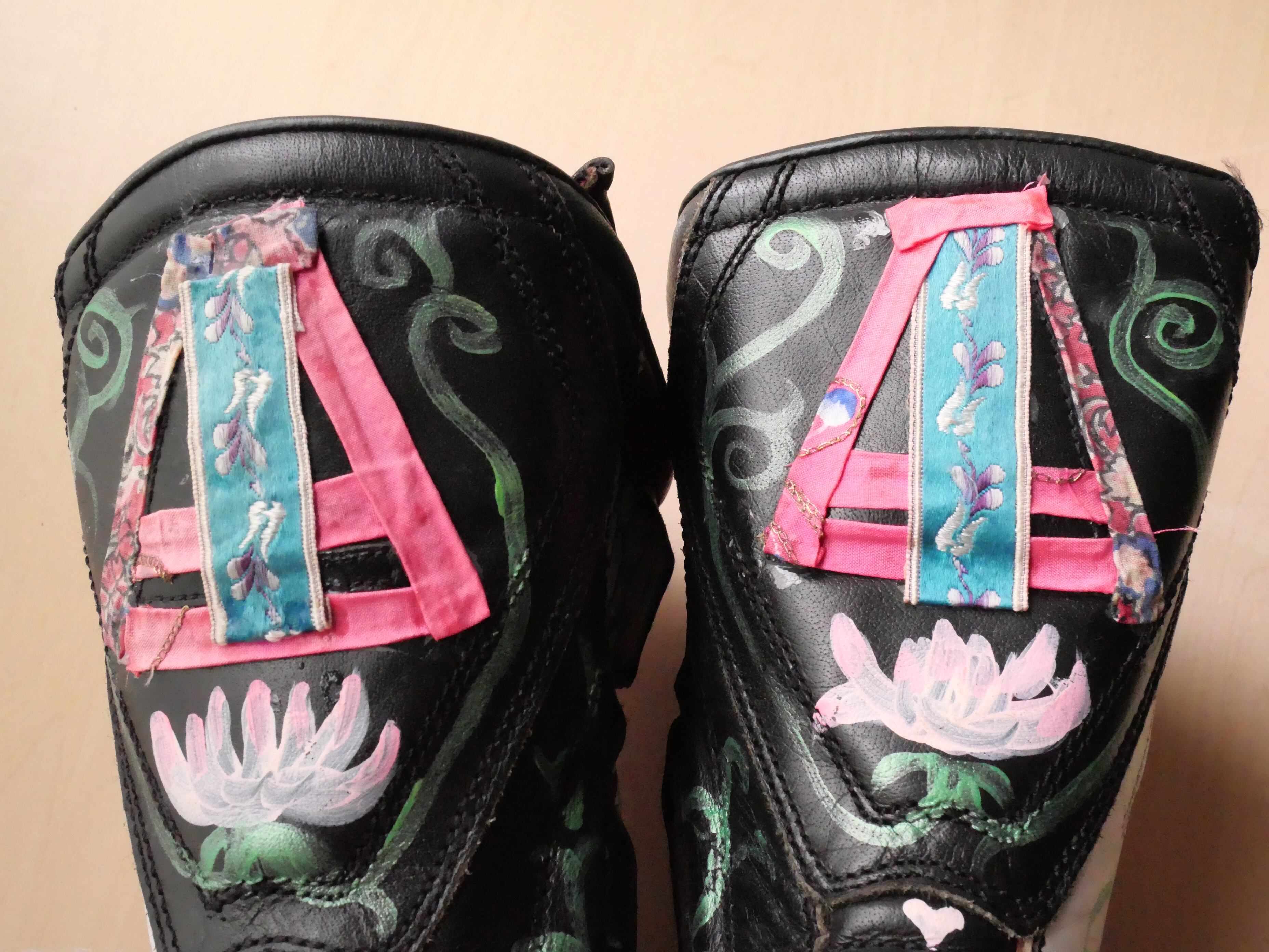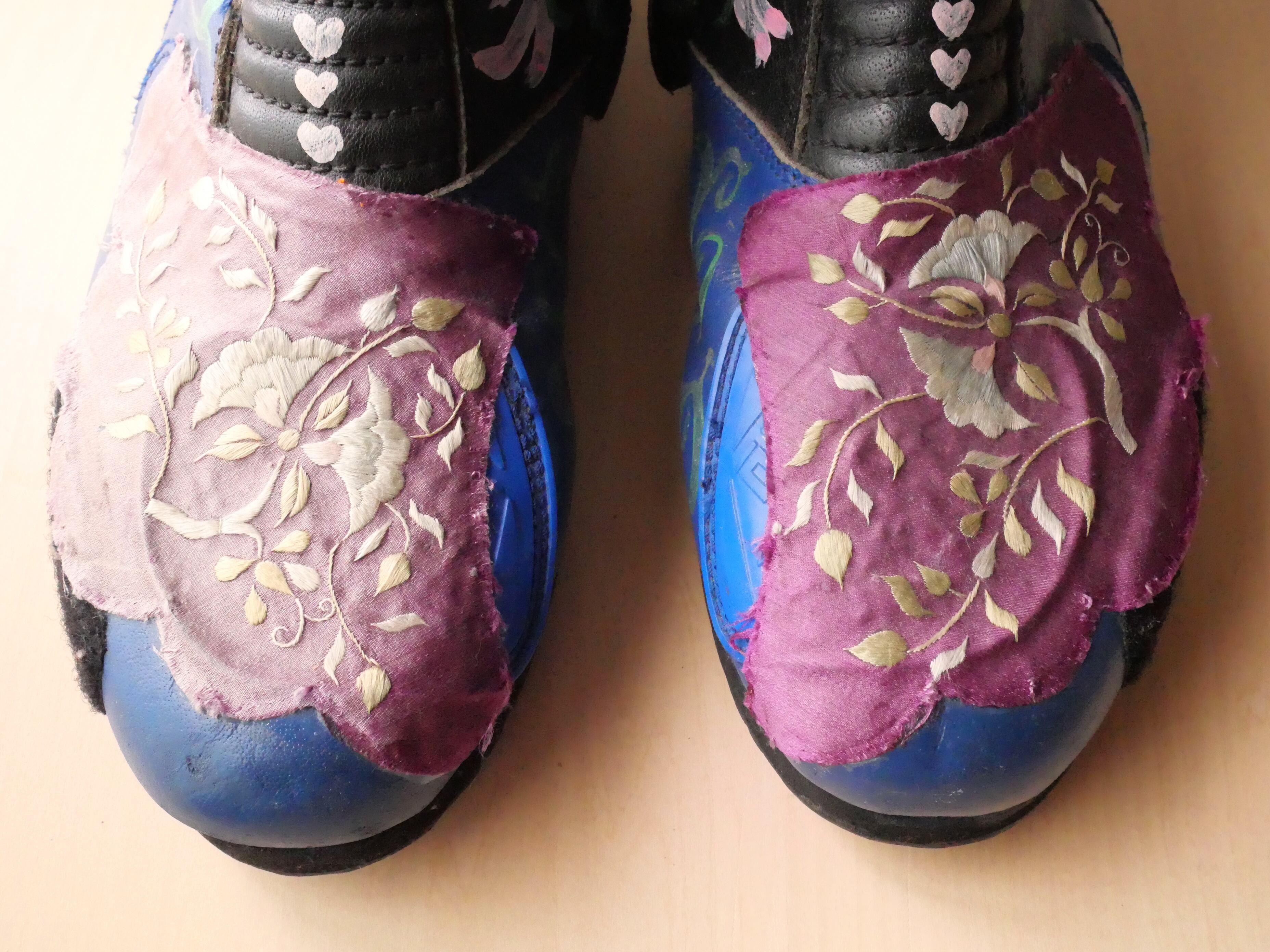 バイカースタイルのコレクション。ハンドペイントやヴィンテージの民族衣装の中国刺繍のパッチワークで装飾を施した1点ものです。