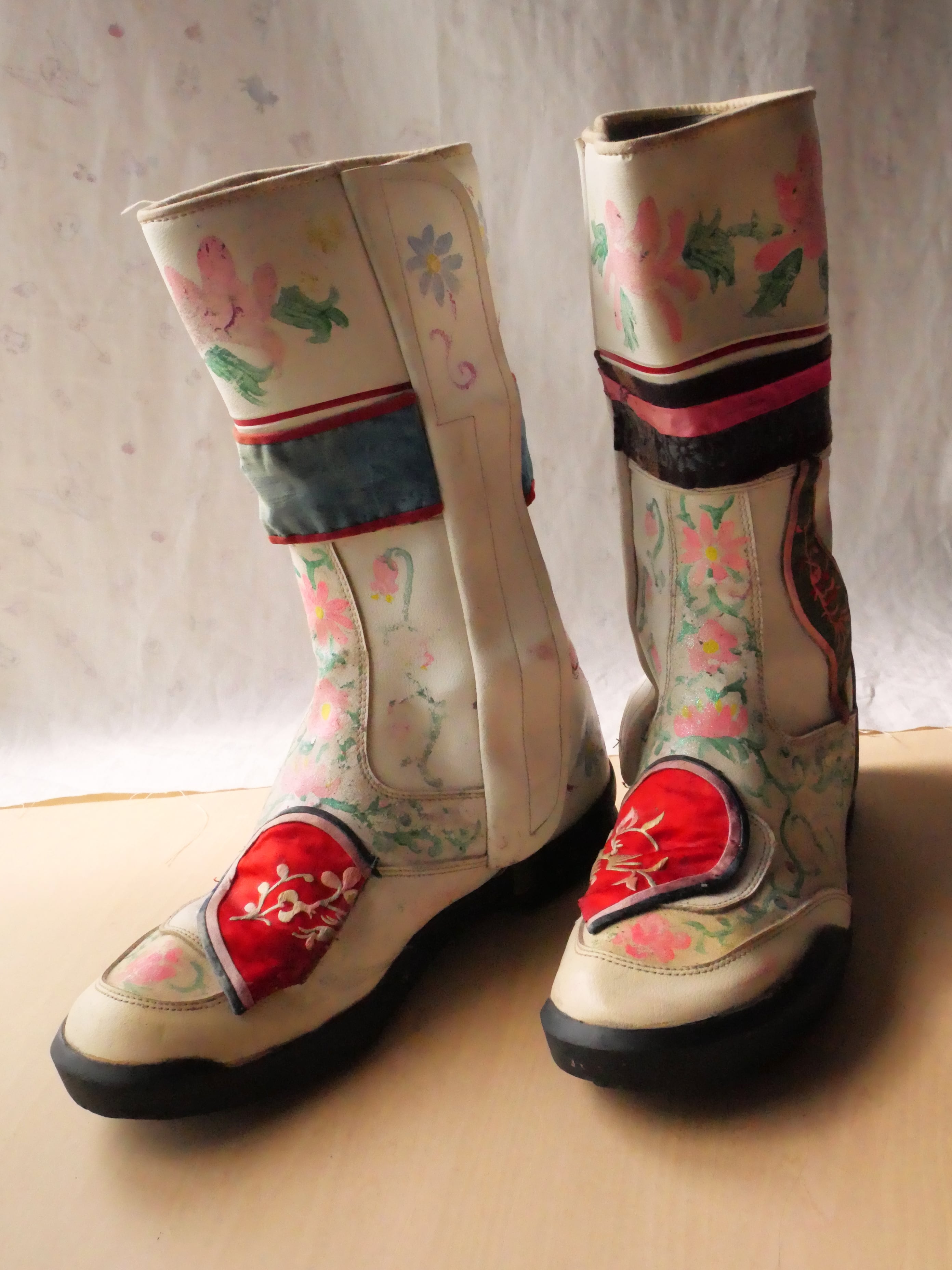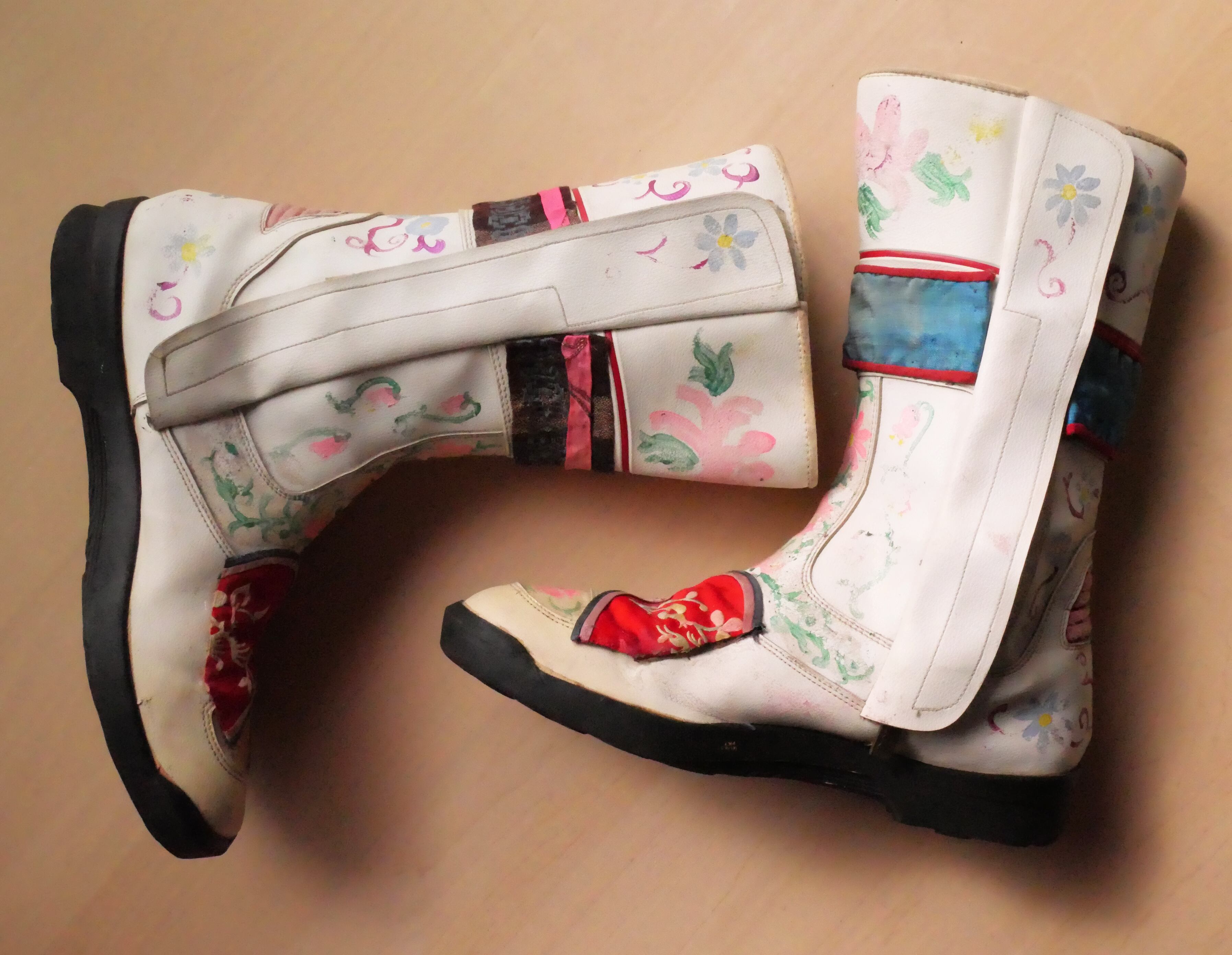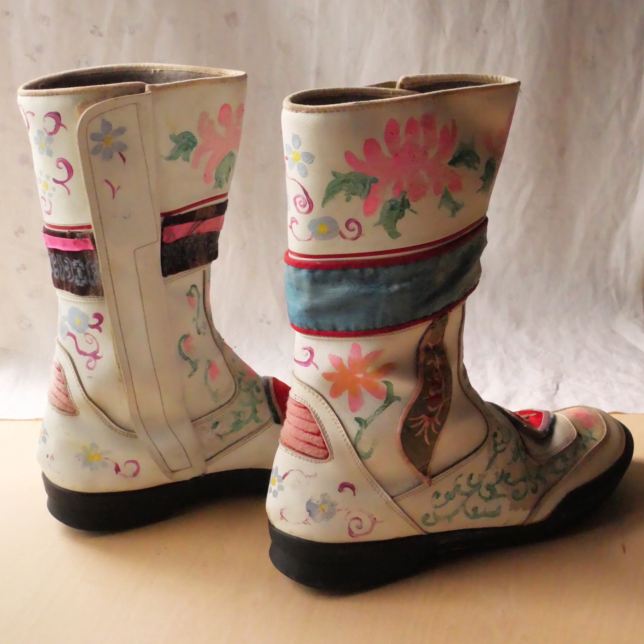 バイカースタイルのコレクション。ハンドペイントやヴィンテージの民族衣装の中国刺繍のパッチワークで装飾を施した1点ものです。
