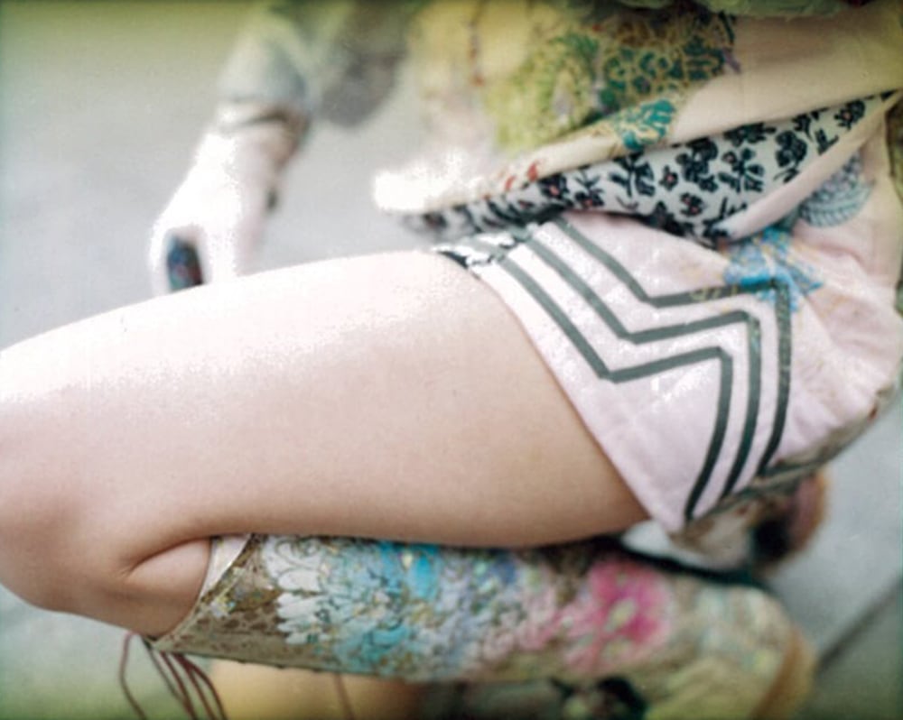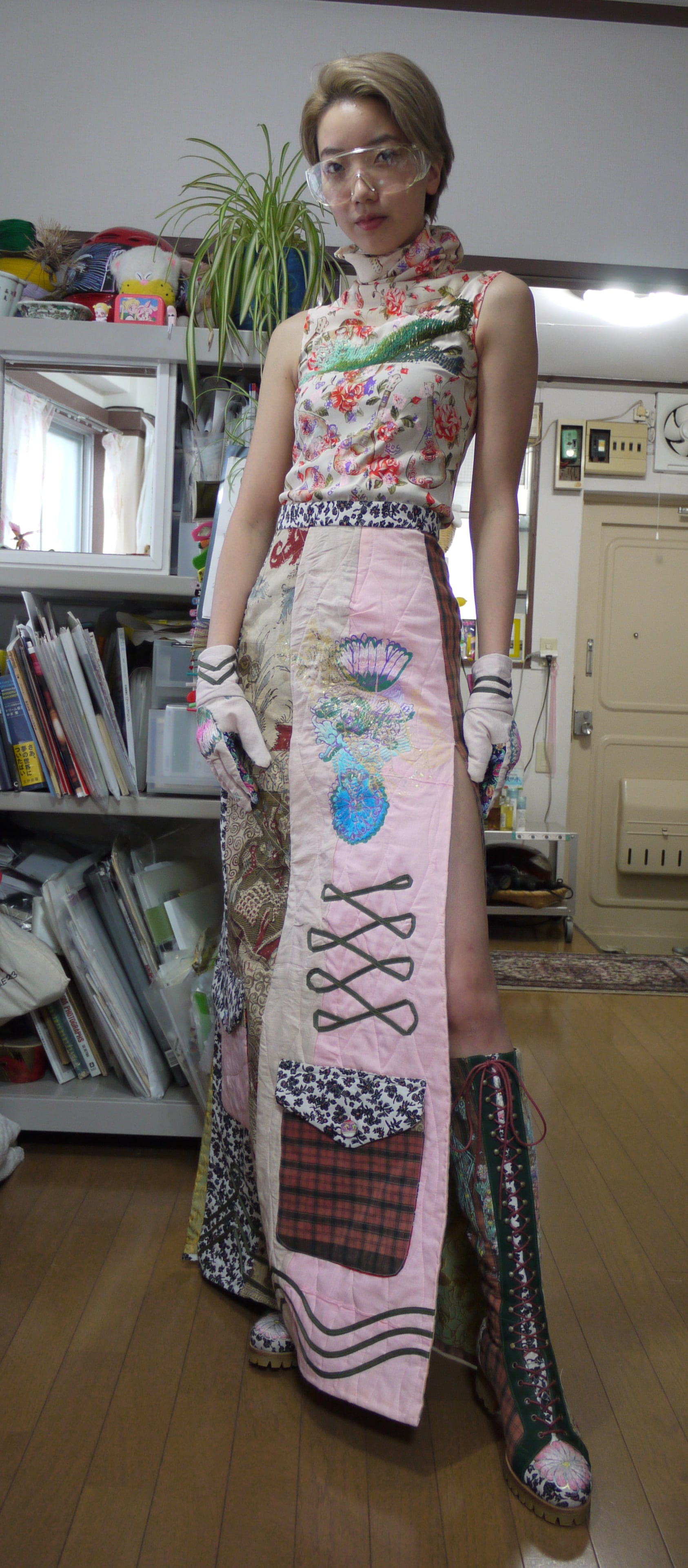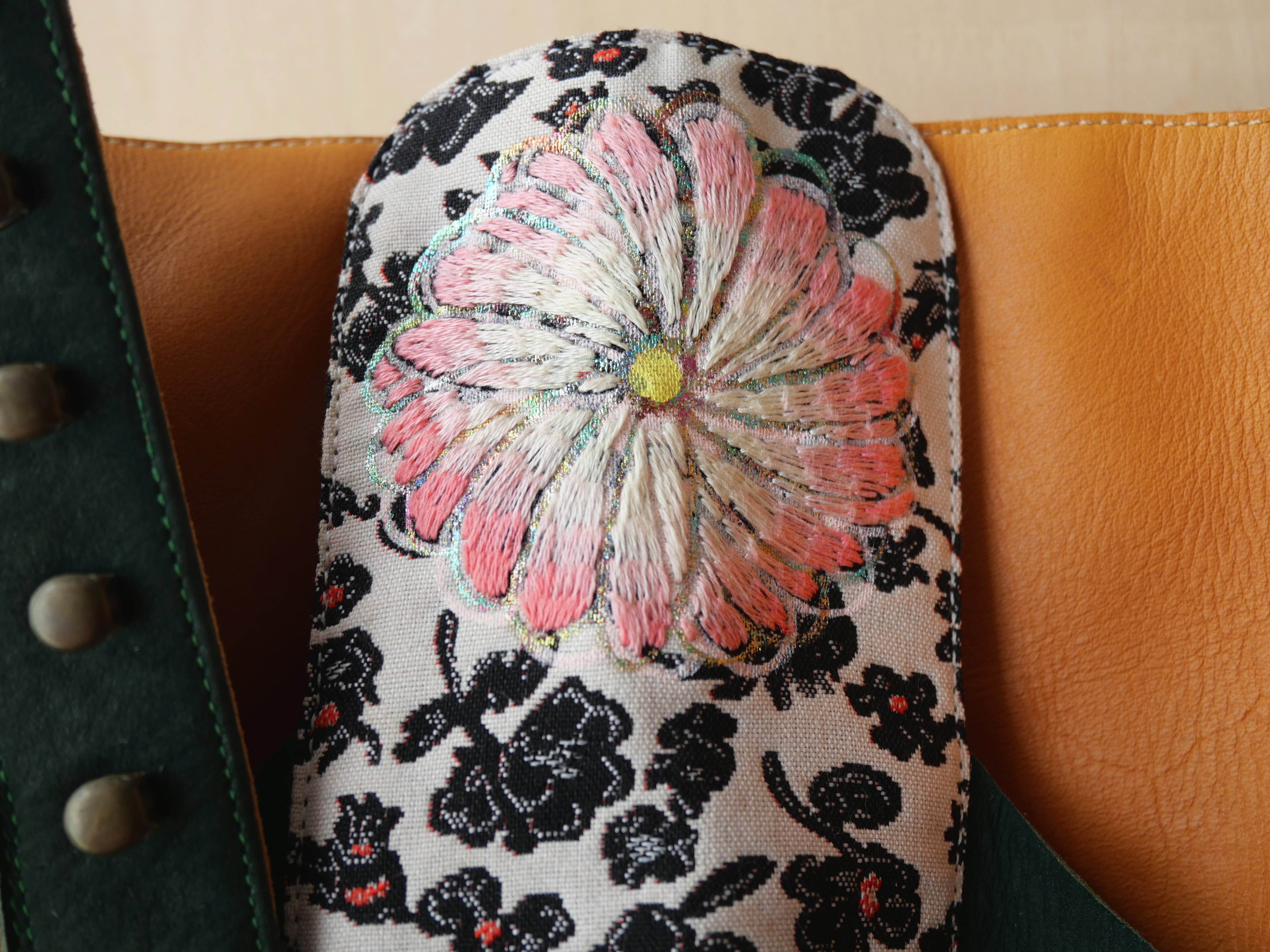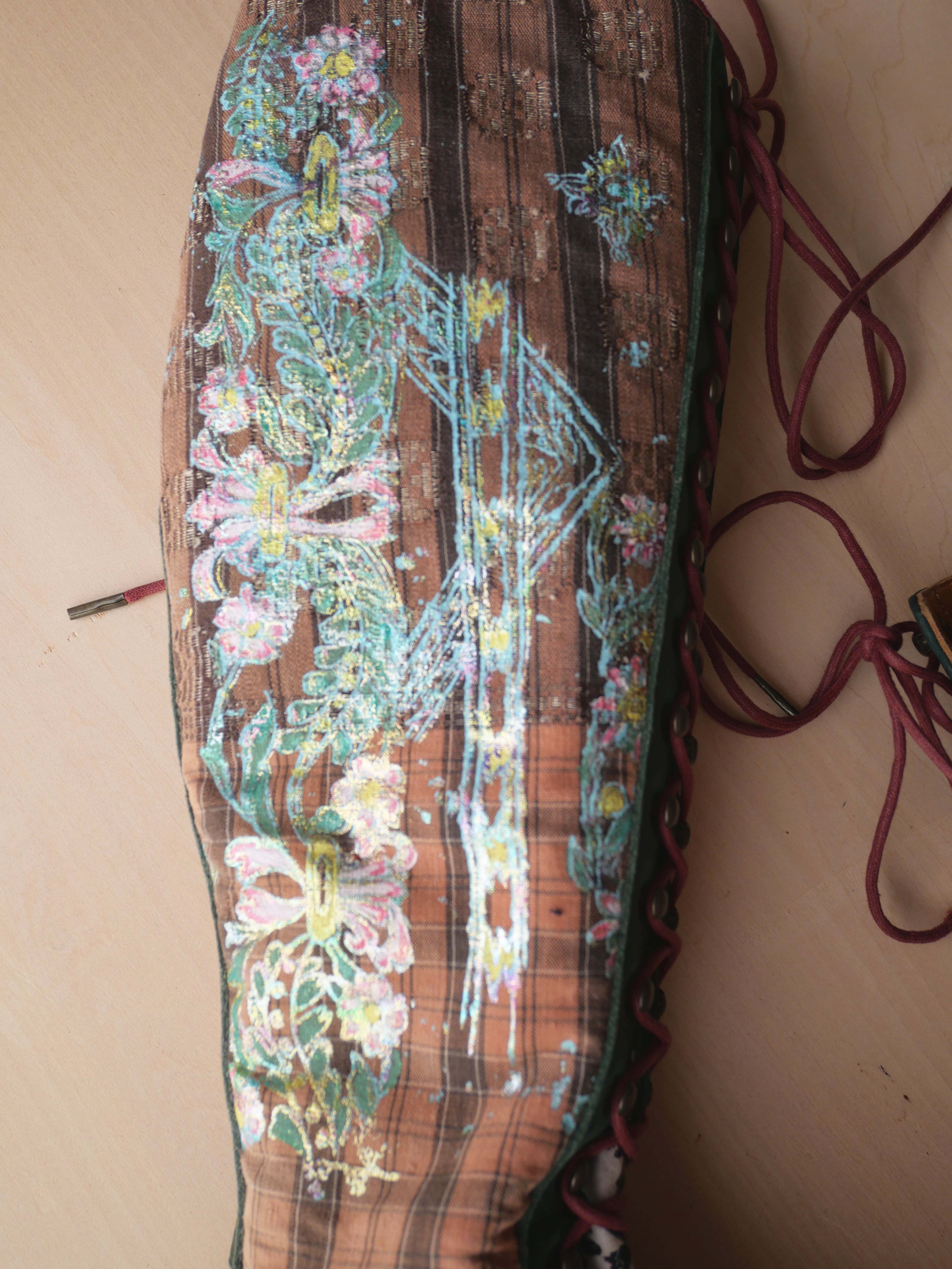 ハンドペイントや箔プリント、ヴィンテージの民族衣装のパッチワークに贅沢な刺繍を施した1点もののブーツです。La Rificolonaさんとの共作。